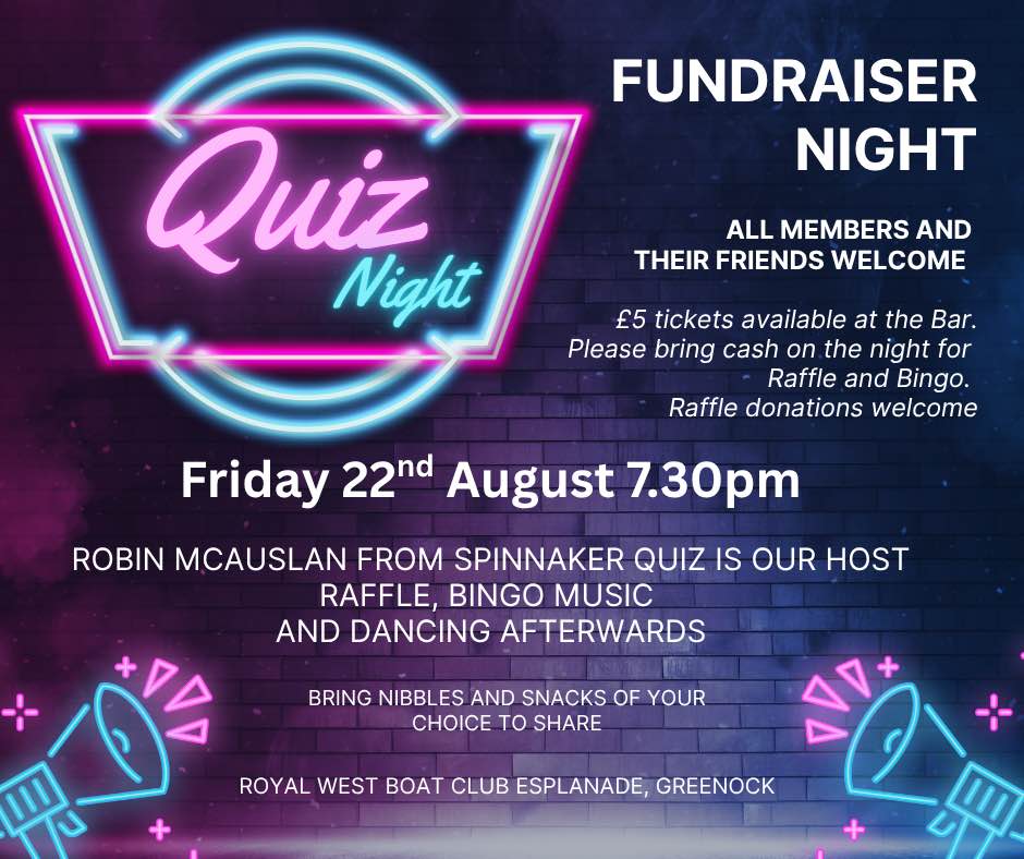 Friday, 22 August 7:30 pm start – Fundraiser Quiz Night with raffle and bingo followed by music and dancing (tickets £5 to support Club Funds)